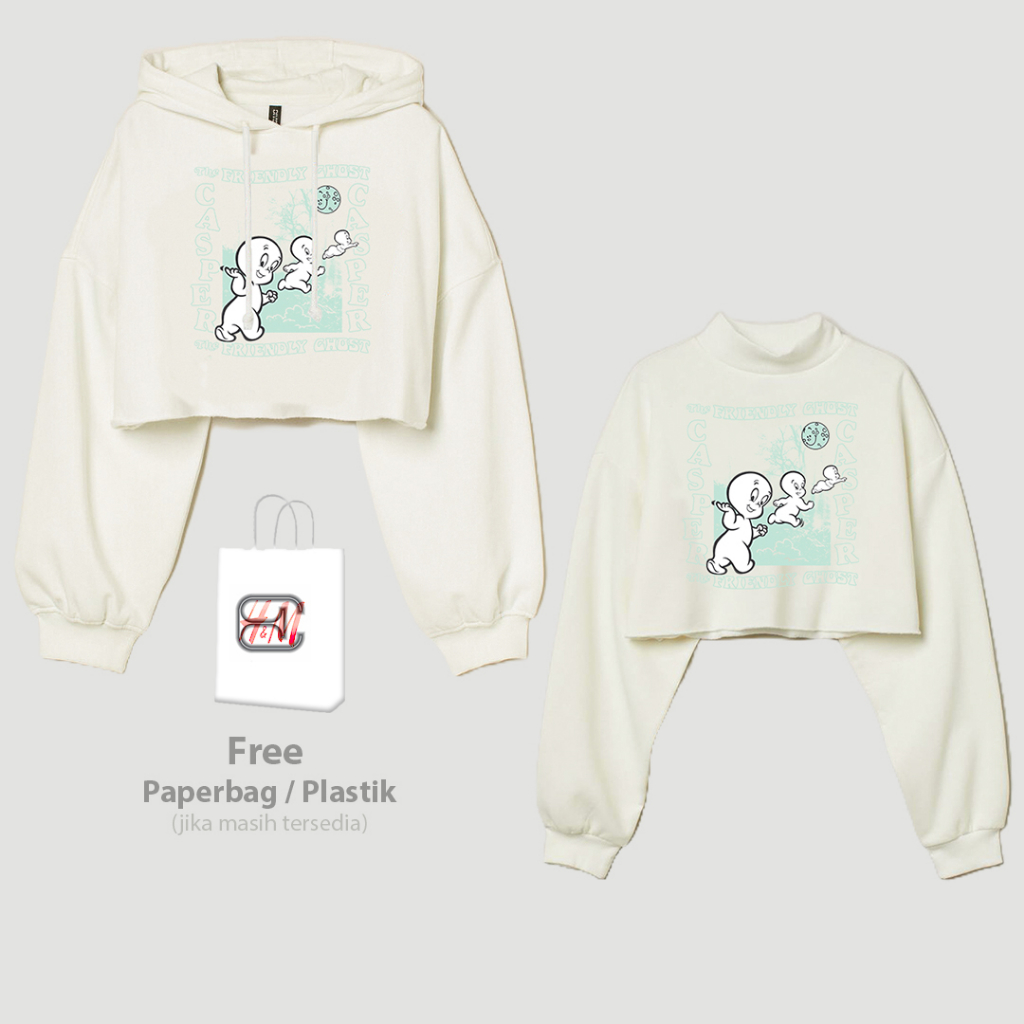 Crop Sweater H&M Casper Broken White Hoodie Crop Wanita Soft Cream