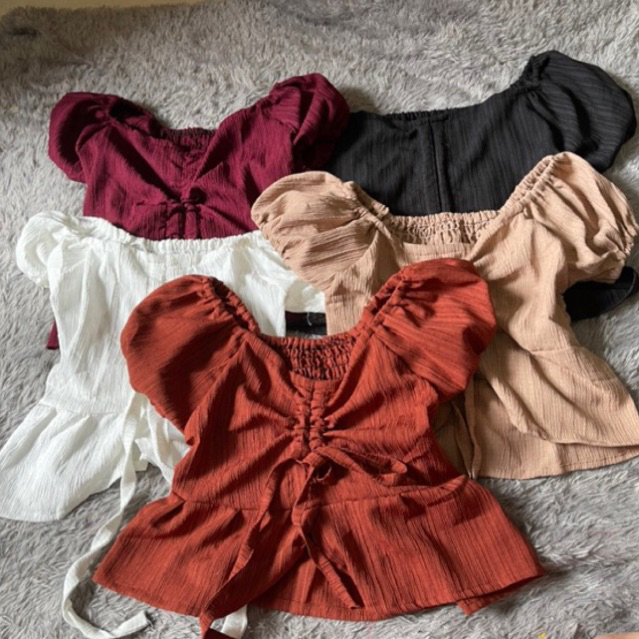 crop top sabrina lin panjang -*35cm lingkardada 90cm bagian belkang ada karet tali bisa serut di atur