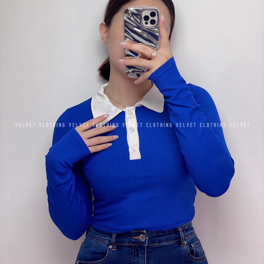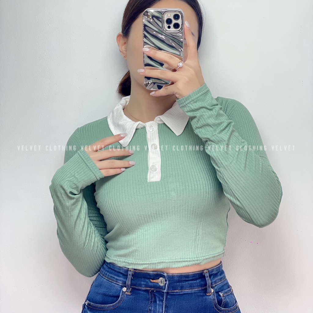 Detail Crop Top Longsleeve / Blouse Kerah Lengan Panjang Rib / Atasan Kerah Lengan Panjang Wanita 4771