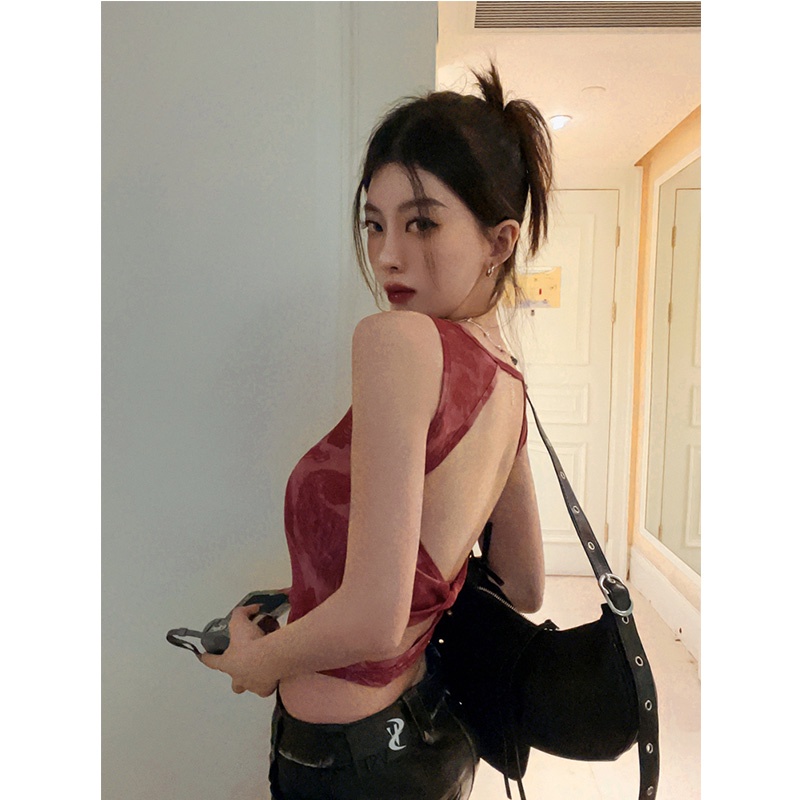 ►cropped top gaya gadis panas manis seksi kamisol dalam halter top rasa desain ceruk pakaian luar wanita gaya pendek musim panas terlihat kurus #COD