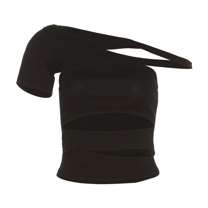 Detail ﺴcropped top keren memancing sistem tarik adik chic kreatif berongga bahu miring strapless slim fit T-shirt wanita all-match #COD