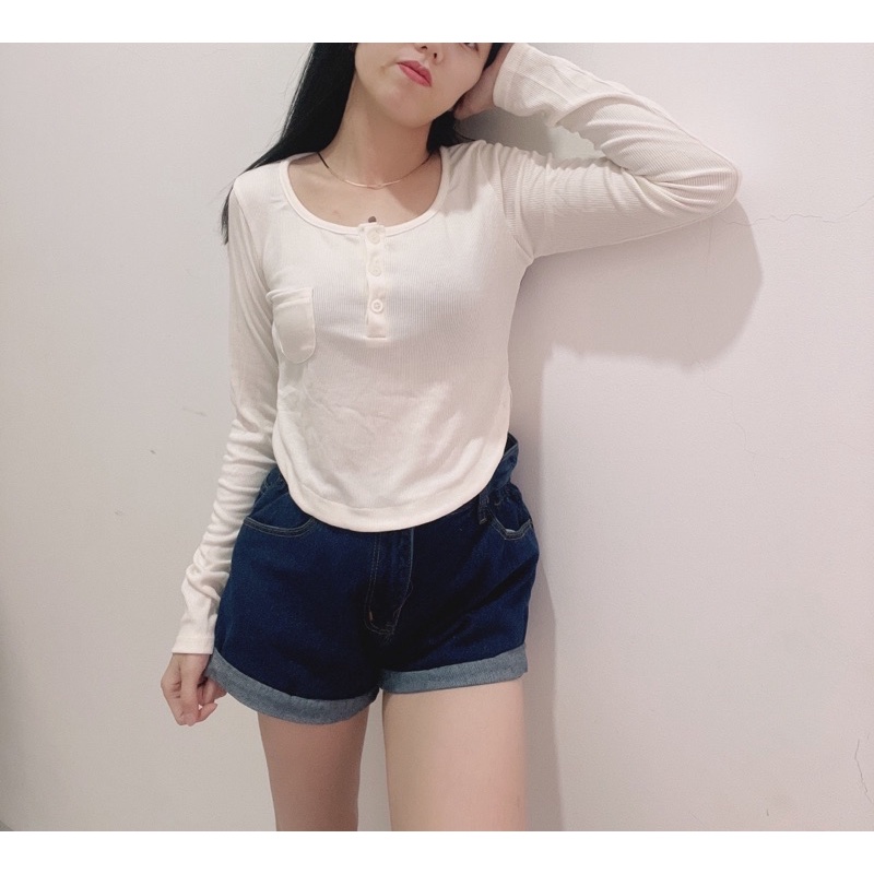 Croptop wanita lengan panjang oval | ellen croptop knit | croptop pocket button lengan panjang oval bawah | atasan crop kancing lengan panjang | croptop korean fashion wanita | aquarius boutique89 grosir