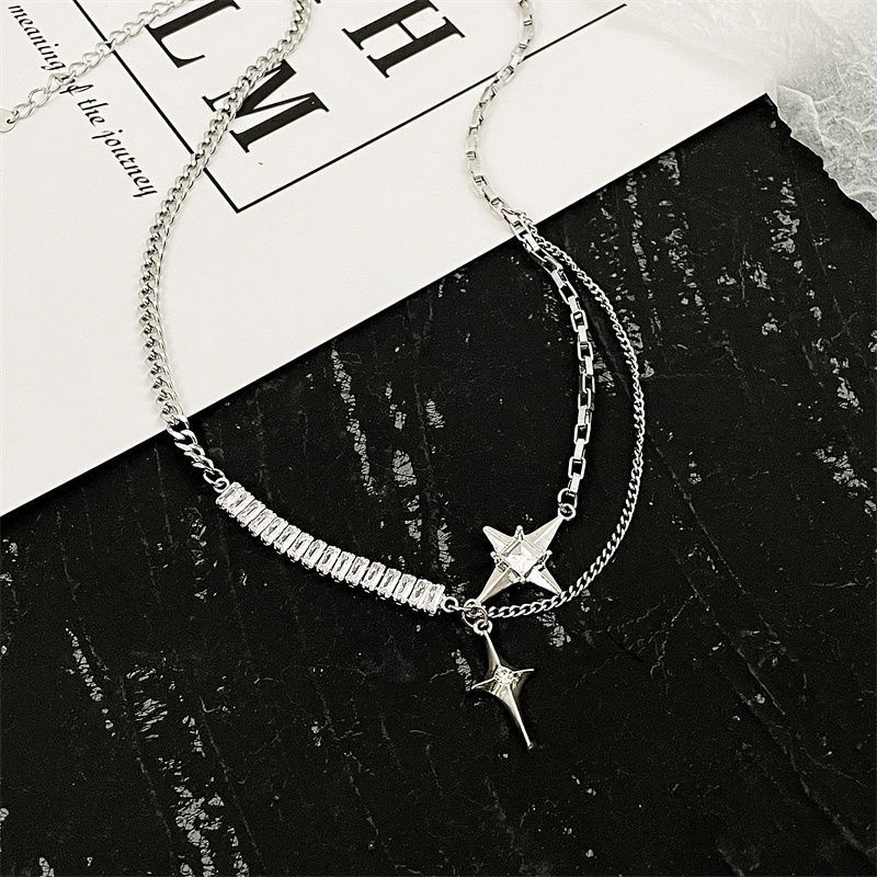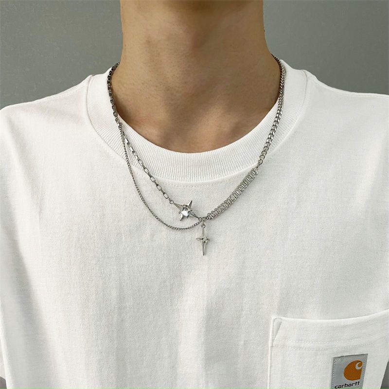 Detail Cross Awn Star Splicing Necklace Accessories Senior Sense Hip Hop