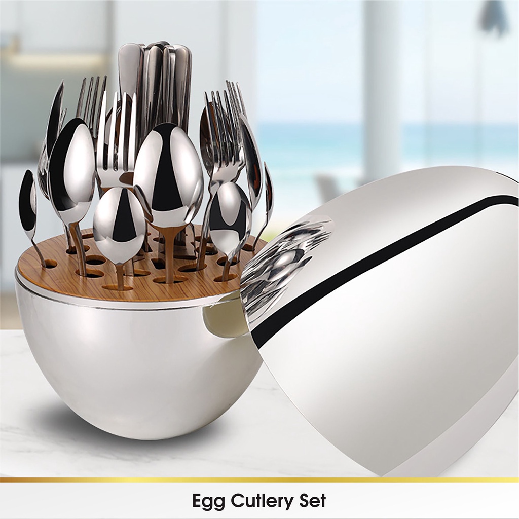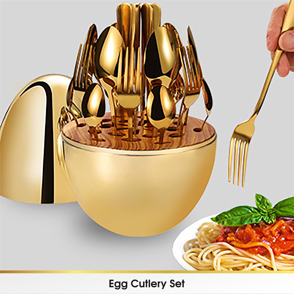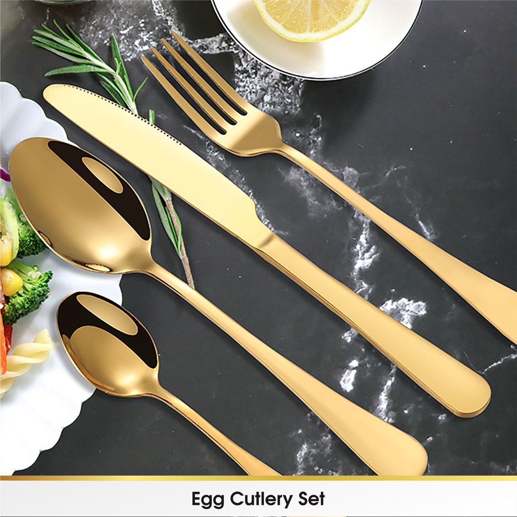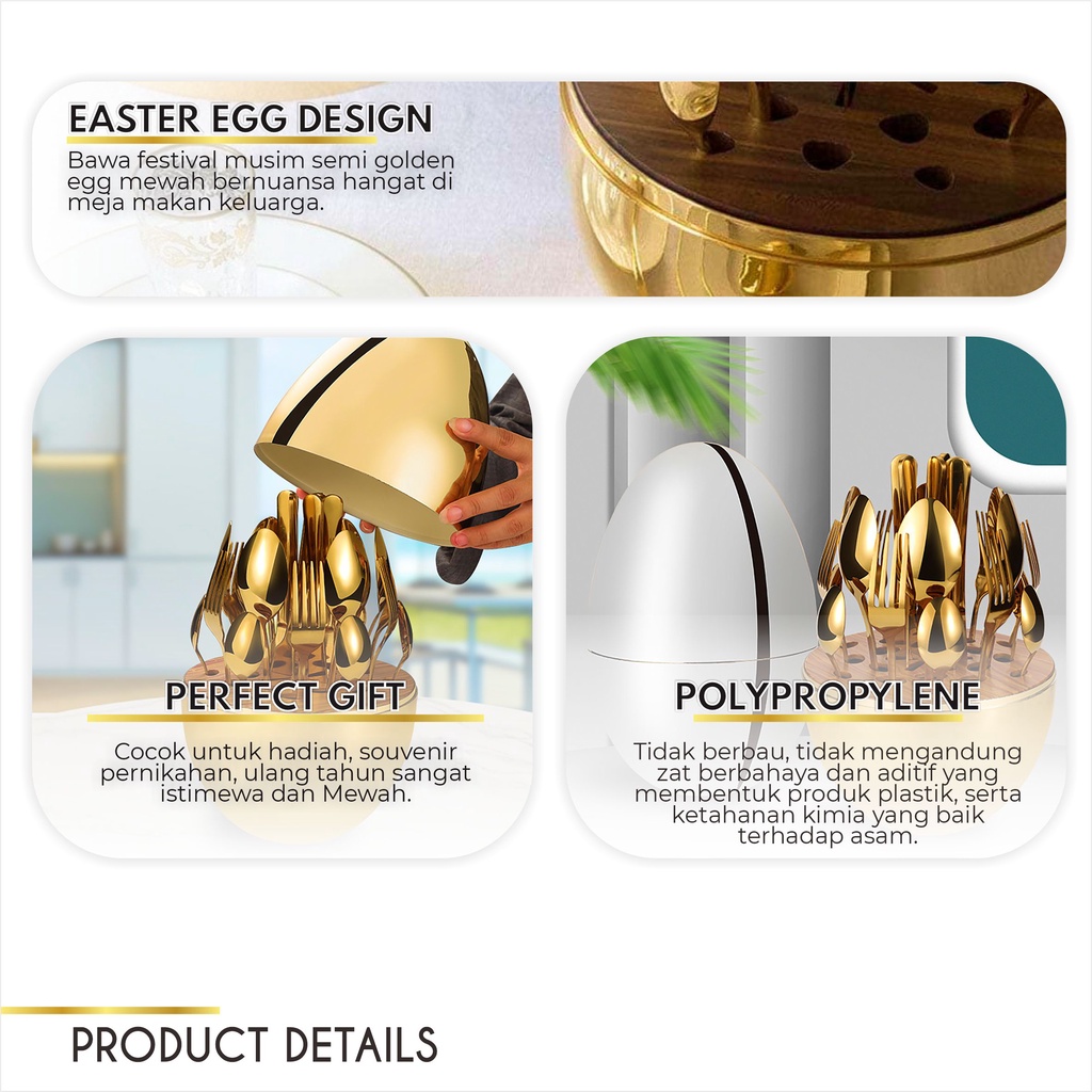 CROWN 24 PCS Mood Egg Cutlery Set Sendok Garpu Pisau Kecil Teh Alat Makan Sujeo Korea Spoon Fork Knife Tebal Stainless Emas Tebal Gold Korea Premium Food Grade