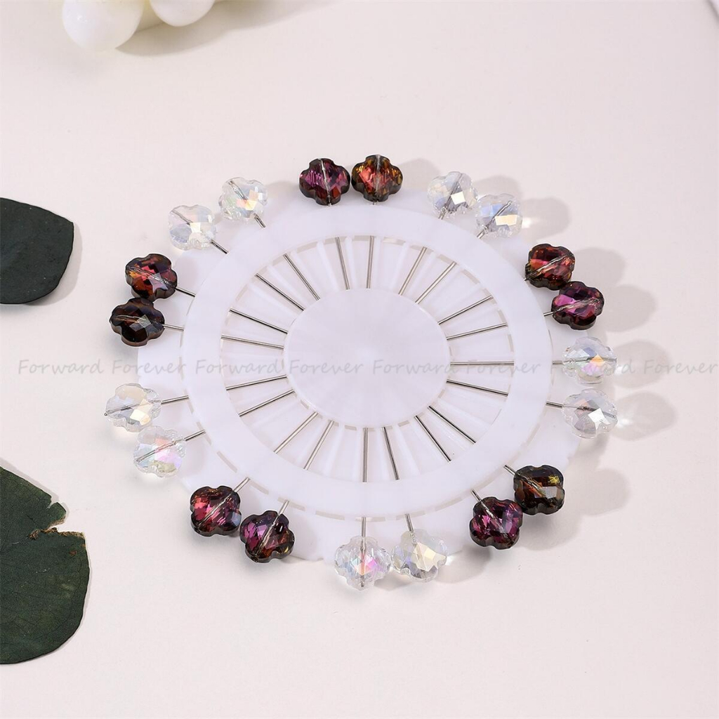 Crystal Clover Grass Jarum Panjang Pin tudung Scarf Bros Pin Aneka Syal Muslim Hijab Klip Bros Kecil Set Klip Logam Untuk Kerudung