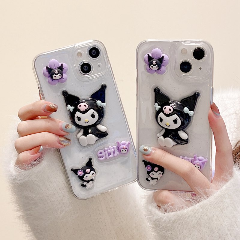 Handphone & Aksesoris > Casing & Skin > Casing & Skin Handphone > 【Crystal resin】3D So Cute Cartoon Kuromi Soft Case IPhone 7 8 Plus XR XS Max 11 12 13 14 Pro Max 14 Plus for Women Girl Gift