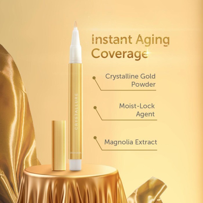 Wardah Crystallure Precious All Day Corrective Concealer, concealer liquid dengan kemasan “click pen” yang praktis dengan teknologi silicone applicator yang presisi dan higienis. Formulanya ringan namun menghasilkancoverage yang tinggi, matte, dan nyaman digunakan seharian, tahan hingga 12 jam. Mengandung Magnolia Extract, serum pencerah yang mampu mencerahkan noda hitam dan area bawah mata sekaligus menutrisi kulit.