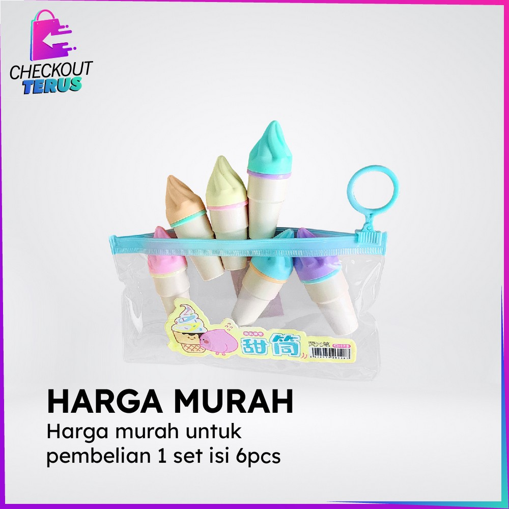 Detail CT A57 Highlighter Pen Es Krim Cone Monas Unik 6IN1 Free Pouch Stationery Alat Tulis Kantor Penanda Berwarna Spidol Highlighter Ice Cream Cone