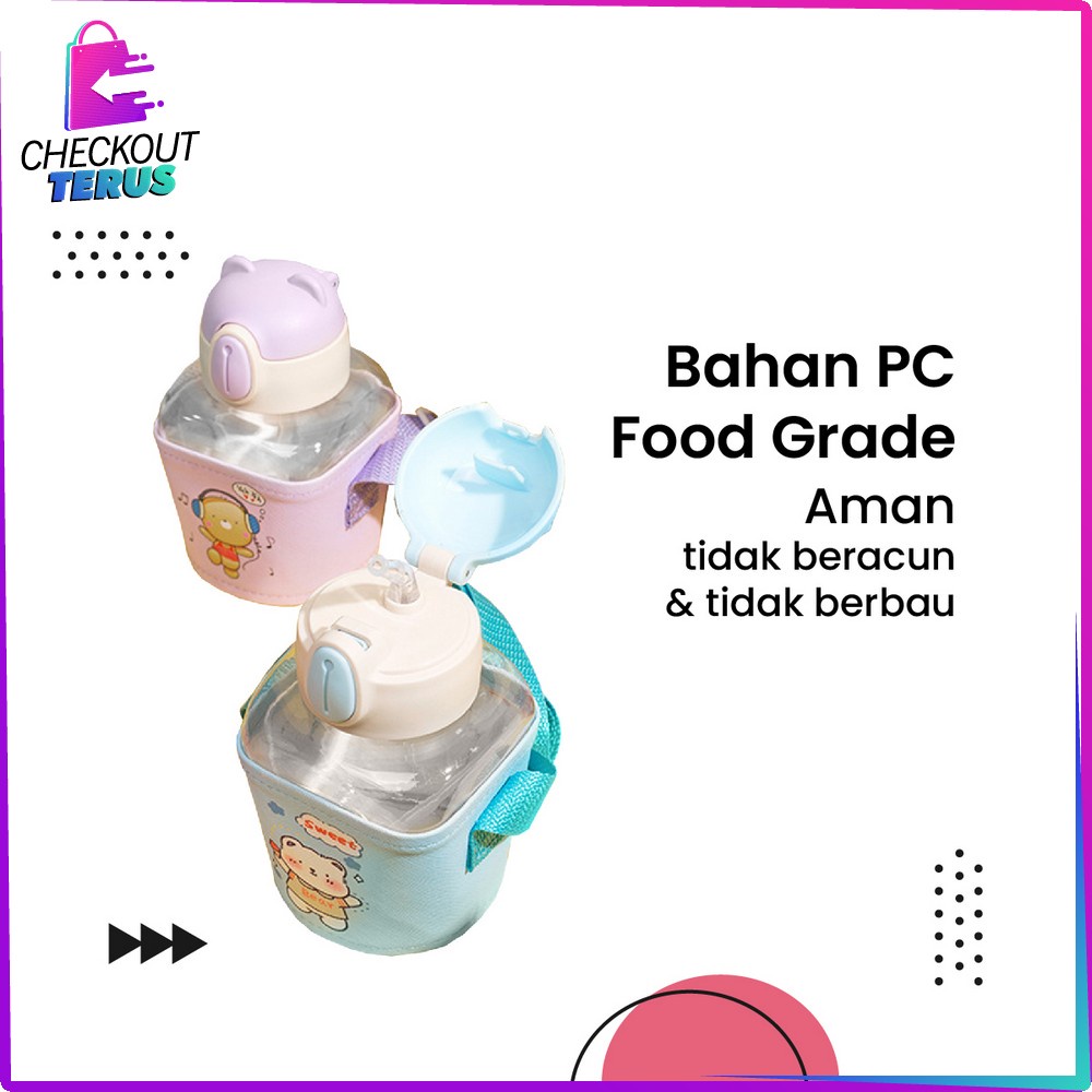 Kapasitas : 600ml Ukuran : 15,5 x 8,5 Cm Bahan botol : PC + PP + food grade silikon Mulut botol : Tutup Flip-Flop mengunci dengan sedotan. Ketahanan : anti bocor, tidak bocor/rembes.