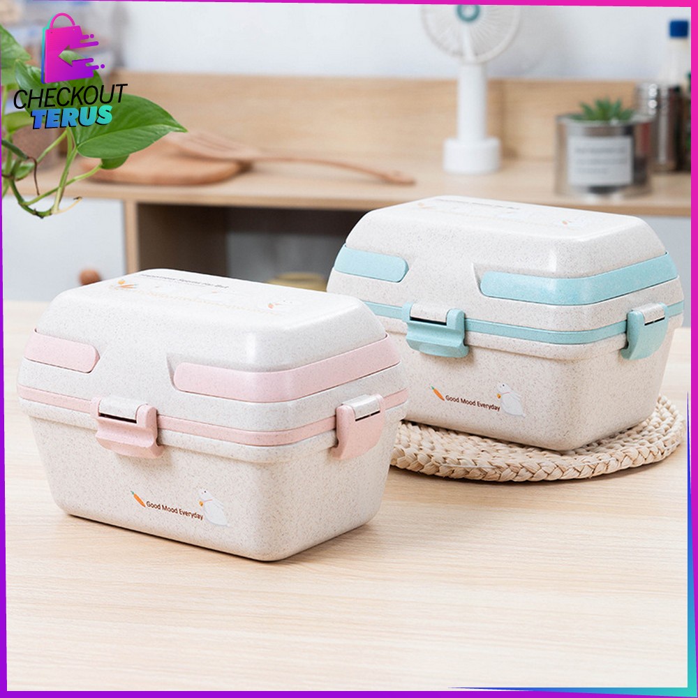 Detail CT C693 Kotak Bekal Microwavable Bento Set Portable Anti Tumpah Lunch Box Set Free Sendok Sumpit Bahan PP Jerami Gandum BPA FREE