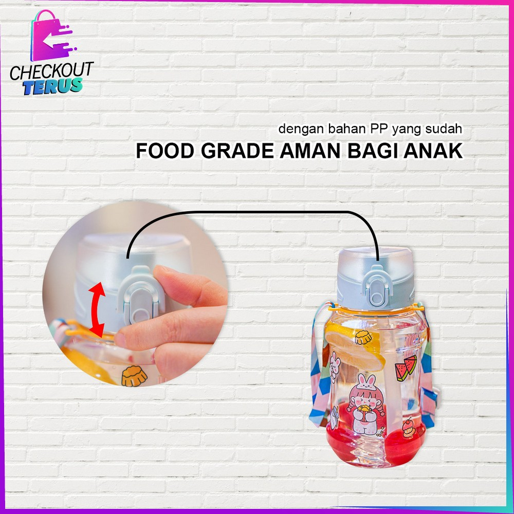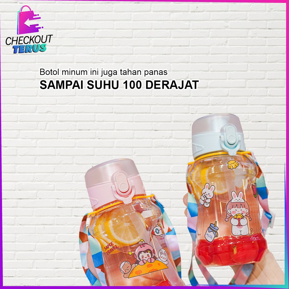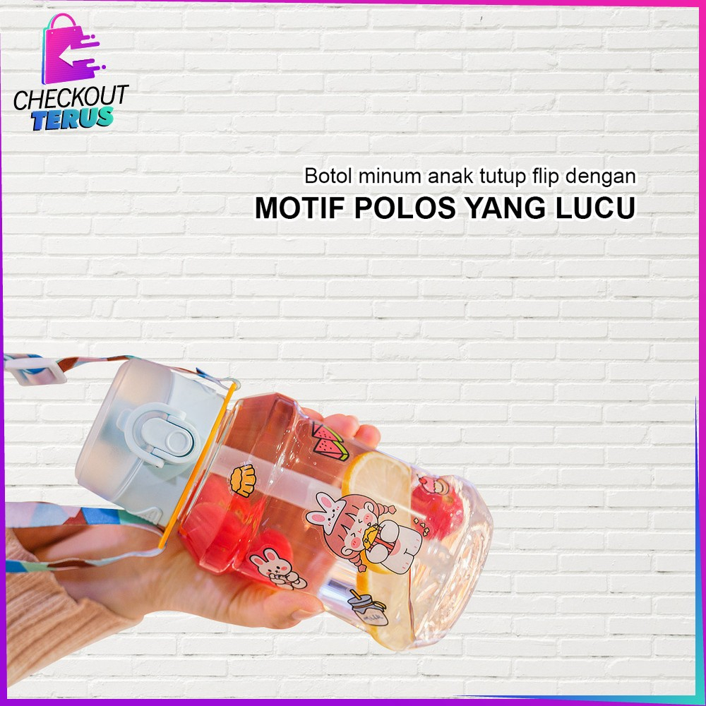 Perlengkapan Rumah > Peralatan Makan > Botol Minum & Aksesoris > CT C830 Botol Air Minum 600ML FREE Tali dengan Sedotan dan Tutup Flip Top Anak BPA FREE Botol Minum Anak Anti Tumpah