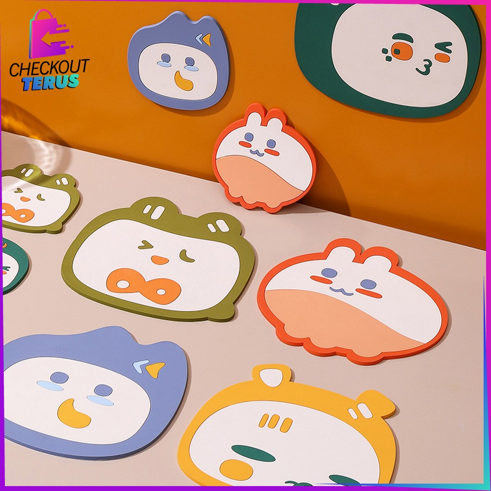 Perlengkapan Rumah > Peralatan Makan > Tatakan Piring & Gelas > CT C868 Tatakan Gelas Silikon Motif Karakter Lucu Tahan Panas Multifungsi Coaster Kartun Anti Slip Tatakan Alas Panci Panas Placemat Anti Panas