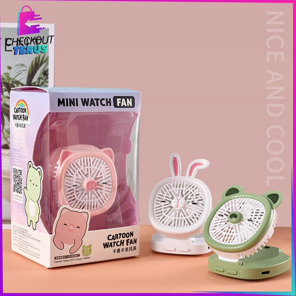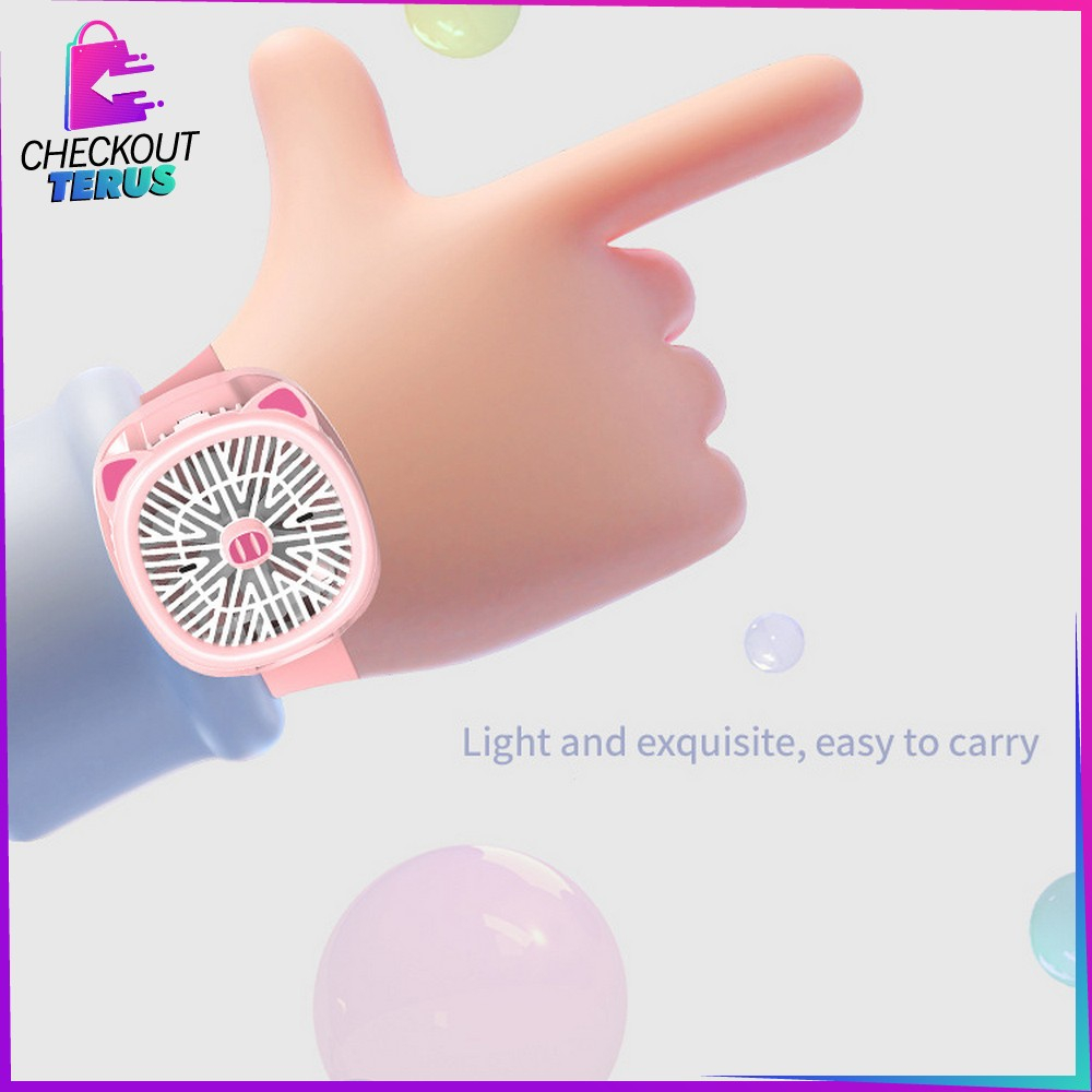 CT C875 Kipas Jam Tangan Mini Portable USB Rechargeable Wirst Watch Fan Kipas Angin Karakter Animal Model Jam Tangan Strap Kipas Kecil