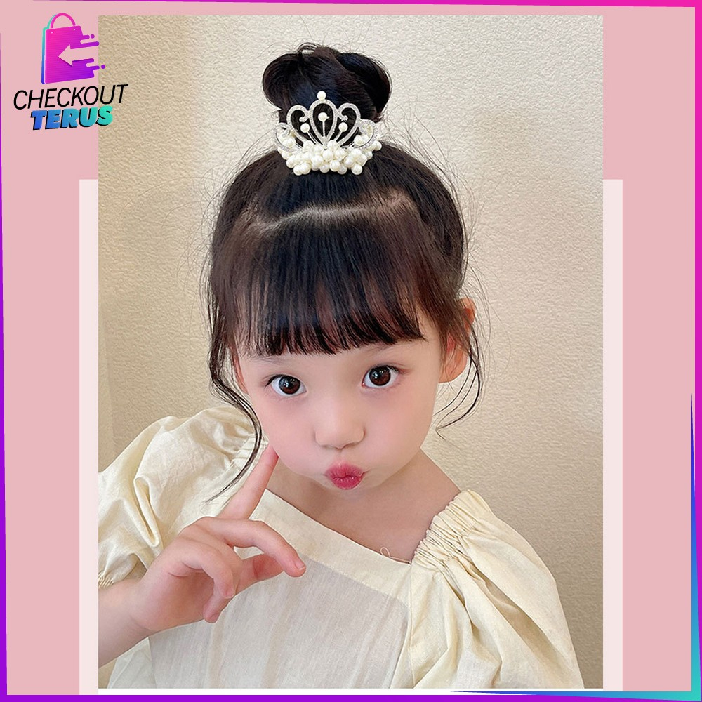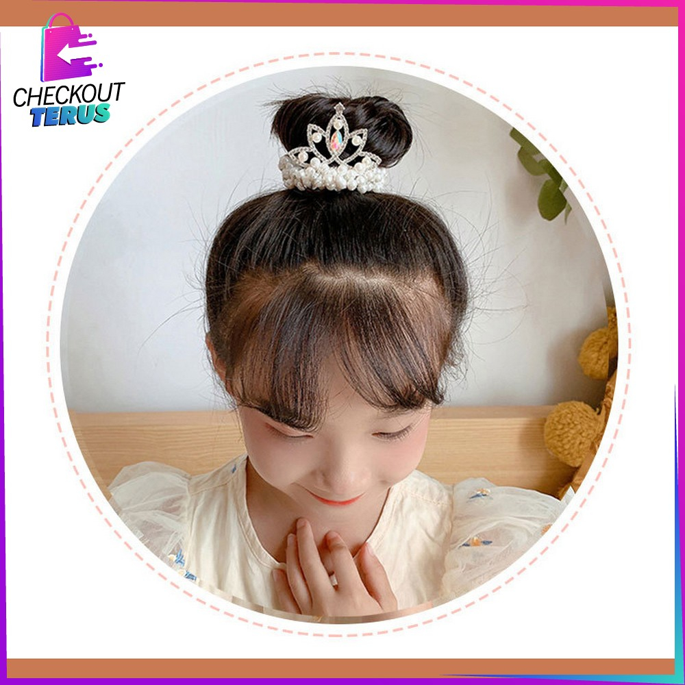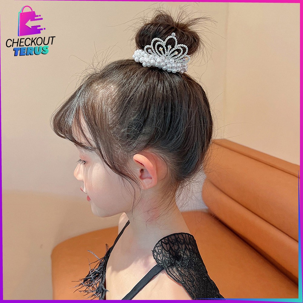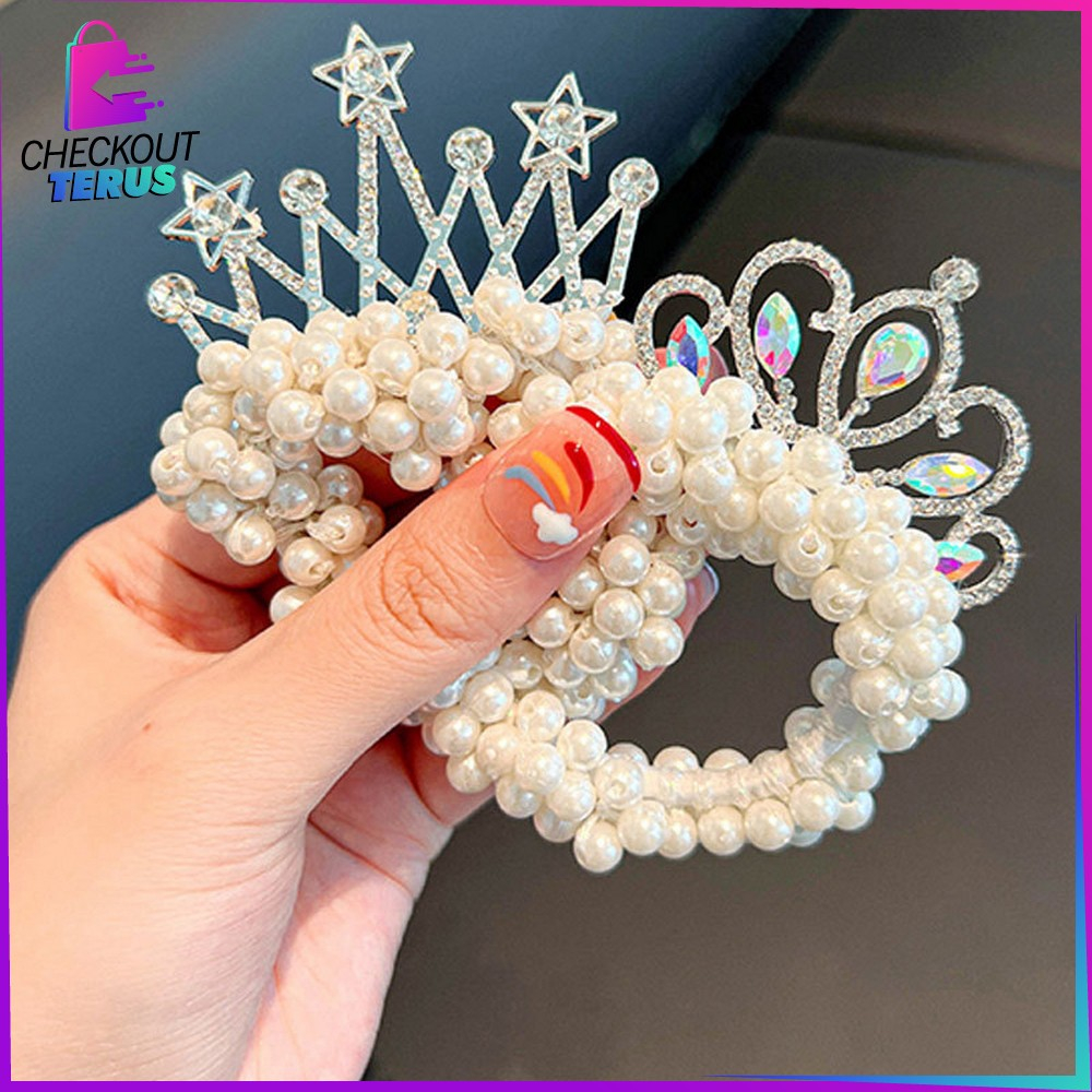 Detail CT C879 Ikat Rambut Anak Perempuan Motif Mahkota Mutiara Korean Style Ikat Rambut Princess Lucu Girls Hair Ties Karet Rambut Mutiara Import