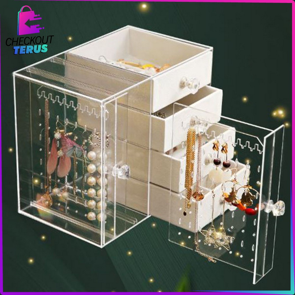 Perlengkapan Rumah > Furniture > Rak & Rak Gantung > CT K136 Kotak Perhiasan Tingkat 4 Laci Rak Acrylic Organizer Anting Cincin Anti Debu soris Kalung Wanita Rak Kosmetik Multifungsi
