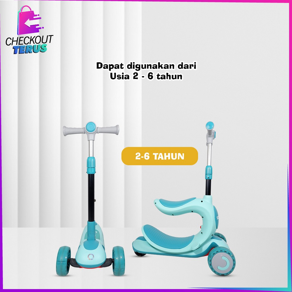 Hibur anak kecil Anda dengan skuter yang asyik ini. Didesain dengan roda yang dapat menyala, memiliki seater atau tempat duduk yang bisa dibuka pasang. Dengan Konsep SIT AND RIDE. Skuter tipe otoped ini praktis karena bisa dibuka pasang dan dibawa kemana- mana. Memiliki roda 3 yang lebar dan menyala sehingga tidak oleng dan aman untuk anak- anak. Cara membelokan scooter duduk pijakan di injak sesuai arah yg ingin di belokan berbarengan dengan stang nya juga. Skuter ini memikat dan mengasyikkan untuk dimainkan. Yang paling penting, desainnya yang aman untuk anak-anak yang mencakup pegangan anti-selip, ketinggian stang dapat diatur menyesuaikan tinggi anak dan rem belakang yang lebar, memastikan anak Anda menikmati waktu bermain mereka dengan senyum cerah!