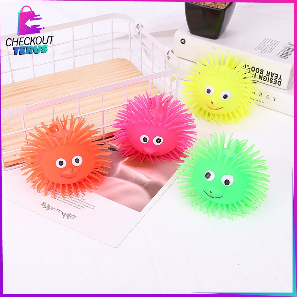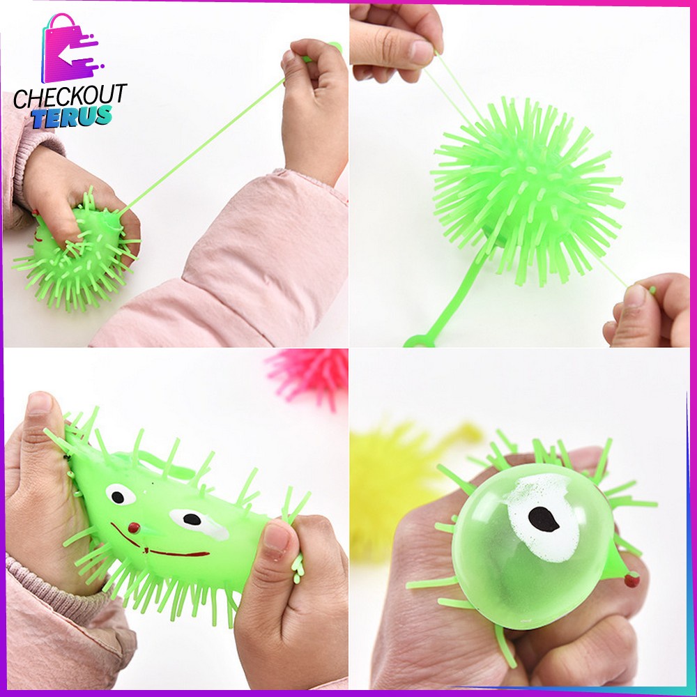 Detail CT M289 Mainan Anak Ubur Ubur Bola Lampu Puffer Ball Yoyo Led Warna Warni Karet Bola Anti Stress Bola Duri