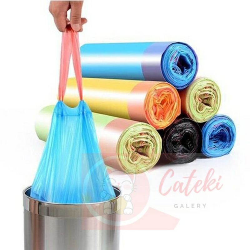 PROMO MURAH Kantong Sampah Roll Dengan Tali 45 x 50 cm Isi 15 Lembar Plastik Kresek Sampah Gulung