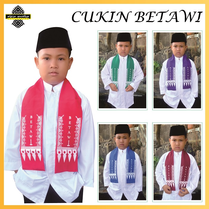 Cukin Betawi Motif Batik Ondel-ondel Bahan Besway Ukuran: Lebar : 11 cm Panjang : 103 cm Tersedia warna -Merah -Hitam -Hijau -Biru -Marun -Ungu