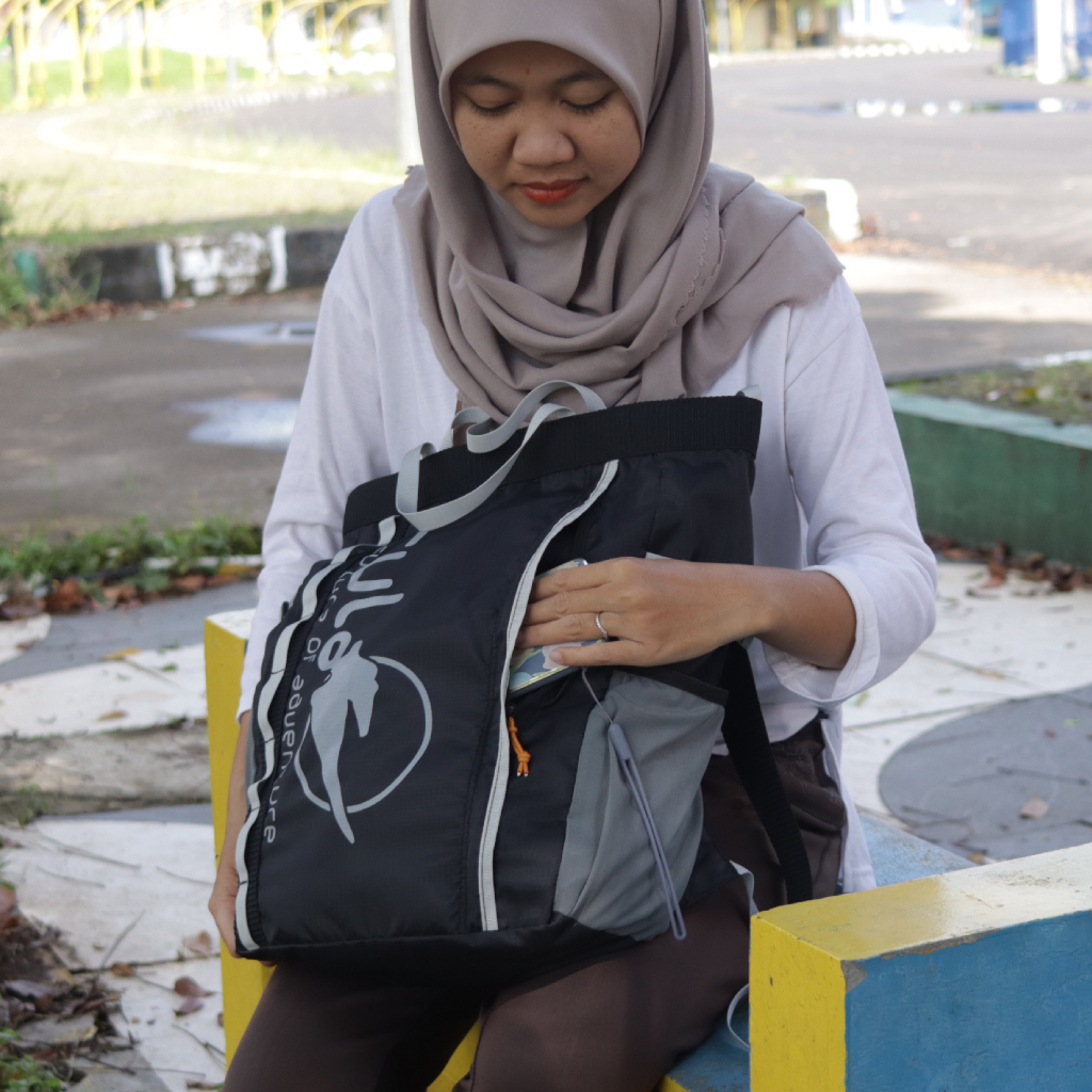 Totebag ini terbuat dari bahan nylon yg berkualitas di jamin kekuatan serta bahan waterproof. untuk mengurangi sampah plastik sehingga tas ini sangat cocok sebagai gantinya. Selain bisa jinjing bisa di slempang dan bisa di gendong seperti tas punggung pada umumnya.