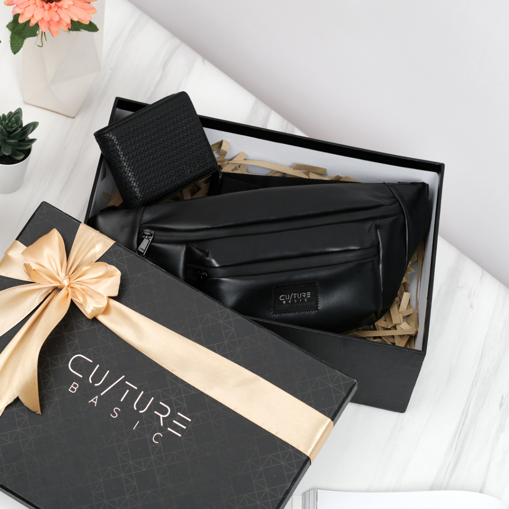 FREE KARTU UCAPAN exclusive, WAJIB tambahkan dinoted saat checkout BUNDLING INI MENDAPATKAN : 1 pcs box random (35cmx25cmx10cm) 1 pcs waistbag/slingbag waterproof 1 pcs wallet