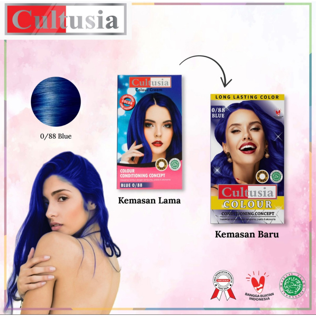 Cultusia Blue 0 88 30ML Krim pewarna rambut yang dilengkapi dengan kondisioner untuk melindungi warna rambut dan mengurangi dari kerusakan dan kering. Dengan pilihan warna yang sesuai menjadikan warna rambut anda lebih Indah, lembut dan berkilau dengan mudah dan cepat. Untuk hasil lebih maksimal, rambut harus dibleaching terlebih dahulu.