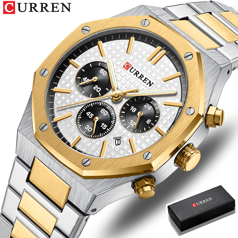Jam Tangan > Jam Tangan Pria > Analog > CURREN Jam Tangan Pria Anti Air Original Rantai Keren Terbaru Mewah Luxury Stainless Steel Kronograf Bercahaya Watch Men Cod Jam Tangan Cowok