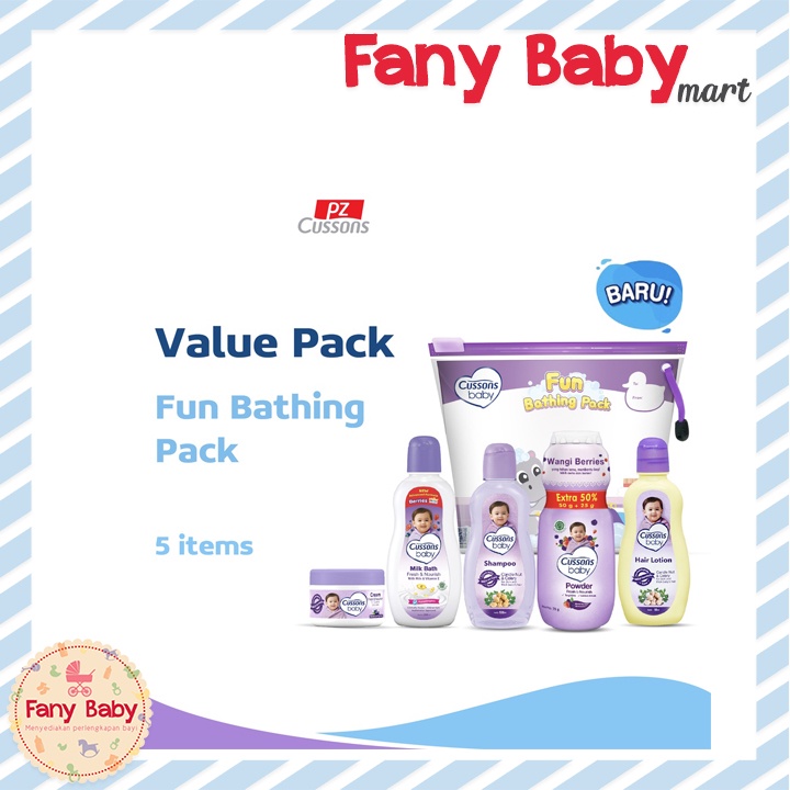 Kulit bayi sangat lembut dan sensitif sehingga memerlukan perawatan dengan kelembutan ekstra. Kelenjar rambut bayi juga belum berfungsi dengan baik, sehingga perlu dirawat serta dirangsang pertumbuhannya. Rangkaian produk Cussons Baby Fun Bathing Pack diformulasikan dengan bahan yang lembut dan aman untuk kulit dan rambut bayi. Gunakan Cussons Baby Fun Bathing Pack sebagai perawatan lengkap untuk kulit dan rambut bayi pada saat dan setelah mandi.