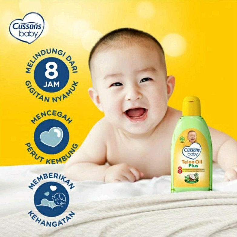 Cussons Baby Telon Oil Plus mengandung bahan alami, seperti oleum cajuputi, oleum eucalypti, oleum anisi, dan oleum cocos yang dapat membantu memberi rasa hangat pada tubuh bayi. Melindungi dari gigitan nyamuk hingga 8 jam. Telah diuji di lembaga terakreditasi. Gunakan setelah mandi fan sebelum tidur