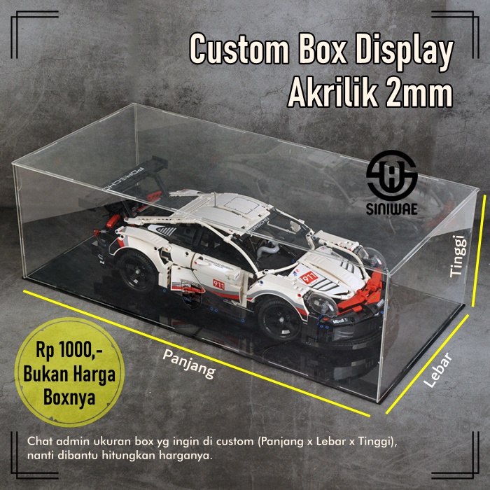 Harga Rp 1,000 bukan harga box yang sebenarnya, tetapi hanya sebagai pengali saja agar mudah dalam check out. Harga tergantung ukuran dan jenis acrylic.