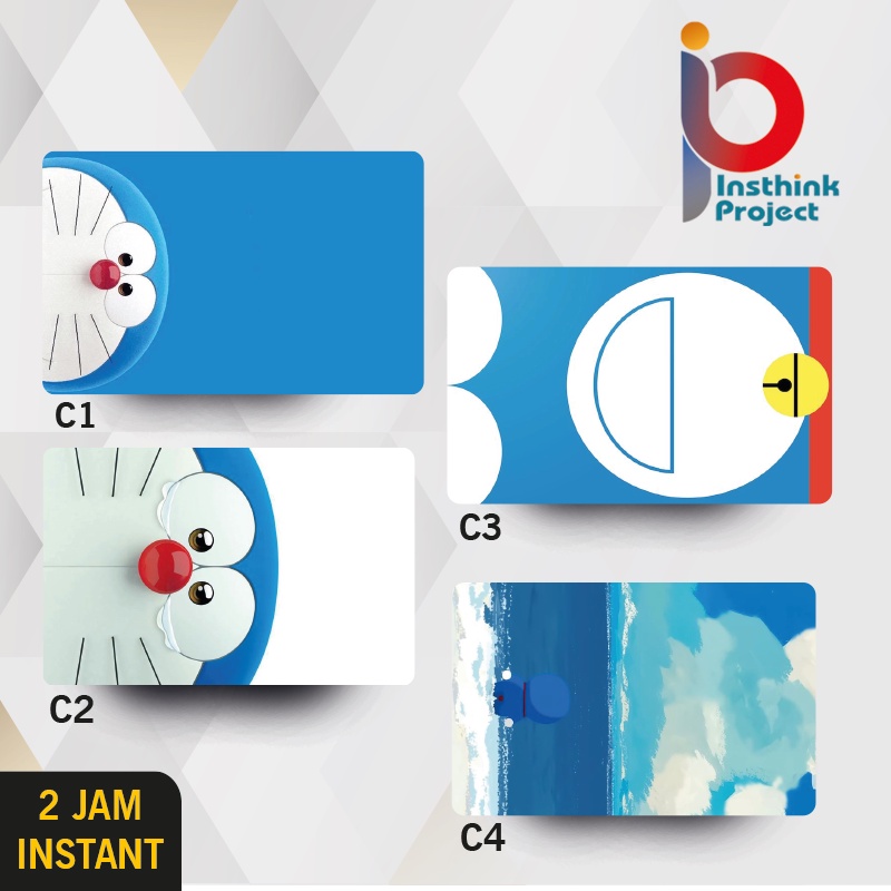 Detail Custom E-Card print UV Seri Kucing Biru D o r a e m o n Viral Murah