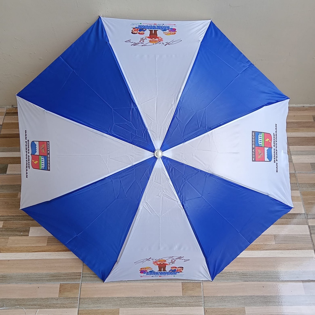 *Sudah ada sarung kain *Payung anti angin *diameter 90-100cm *rangka besi hitam *panjang payung dilipat 24-25cm *sudah cetak logo 1 warna atau full colour di 1-4 sisi putih payung. *ukuran design cetak lebar 19,5cm x tinggi 17cm (gambar horizontal dan vertikal menyesuaikan) *Proses pengerjaan 1-2 hari kerja