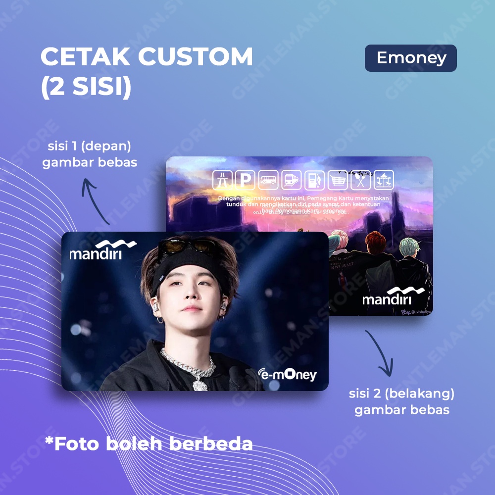 - 1 SISI ( CETAK DEPAN AJA, BAGIAN BELAKANG GAMBAR BAWAAN BANK RANDOM ) NO KARTU ADA DI BAGIAN BELAKANG KARTU