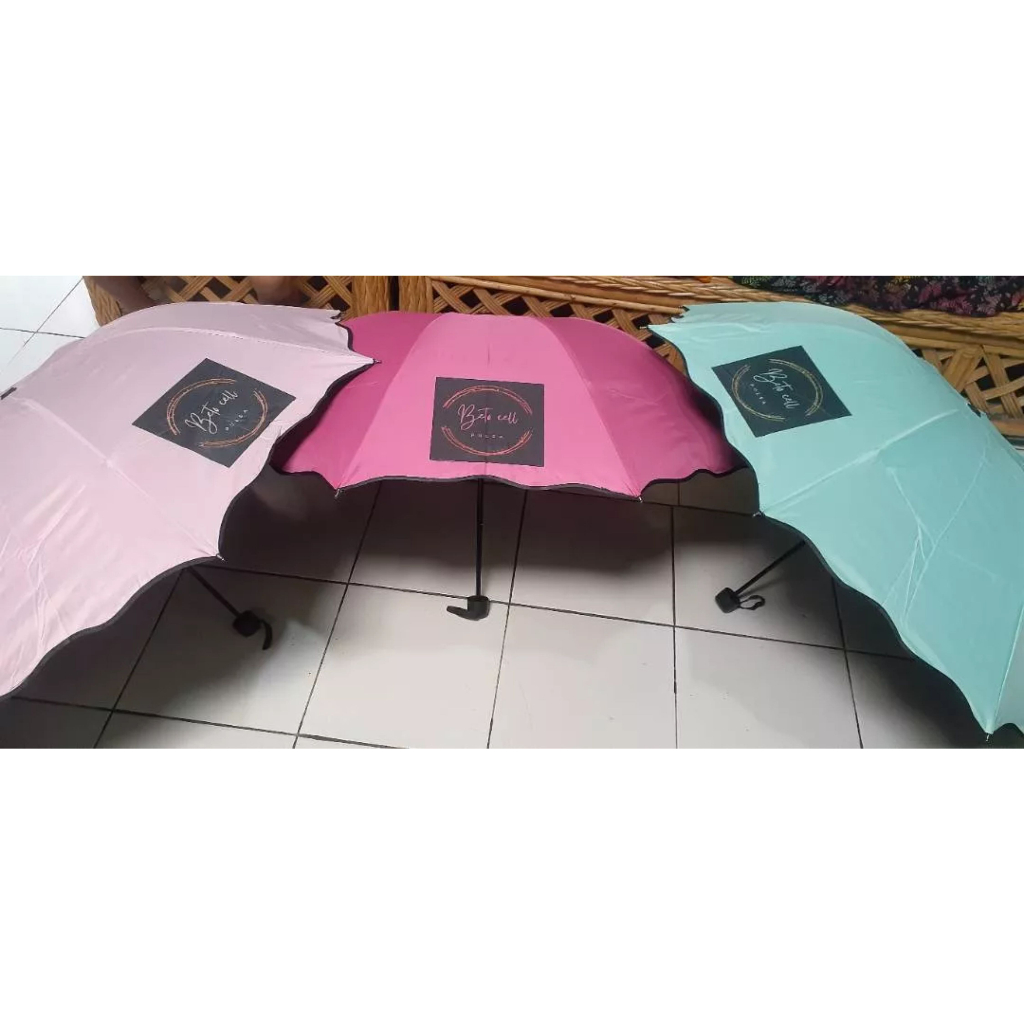 Perlengkapan Rumah > Payung > Payung Lipat > [ custom satuan ] payung lipat 3d gelombang dalam hitam sudah sablon cetak logo gambar design suka-suka | pink muda toska hijau muda