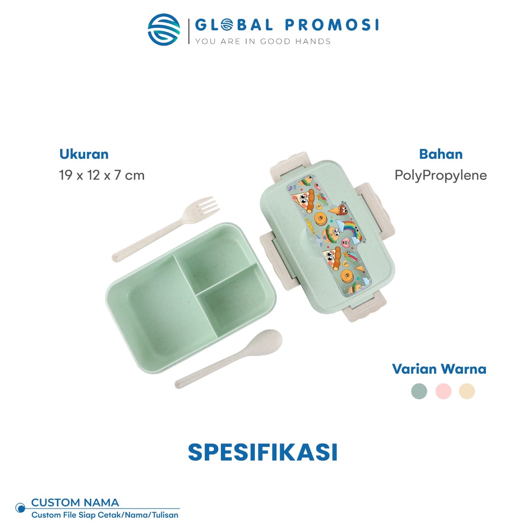 Custom Lunch Box Kotak Tempat Makan PP Jerami Gandum 1000ml FREE SENDOK DAN GARPU