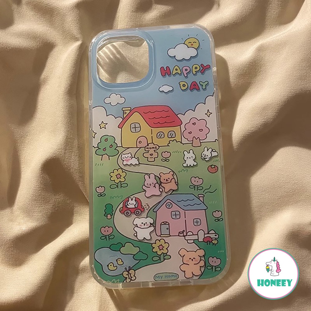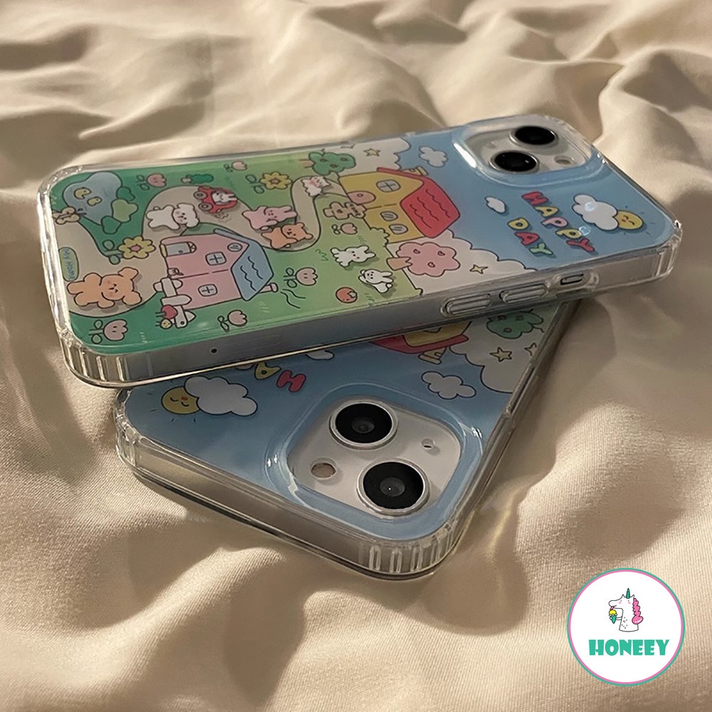 Handphone & Aksesoris > Casing & Skin > Casing & Skin Handphone > Cute Bear Bunny Graffiti Phone Case Kompatibel Untuk iPhone 14 Pro 12 13 Pro Max Case Iphone11 Bahan Akrilik Keras Anti-Drop Cover Pelindung