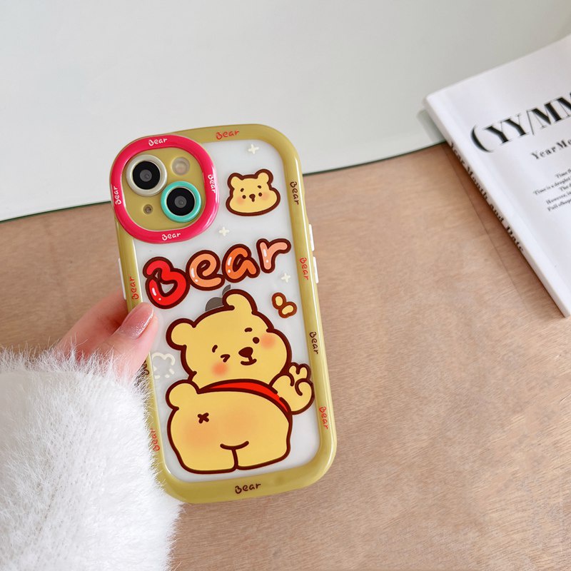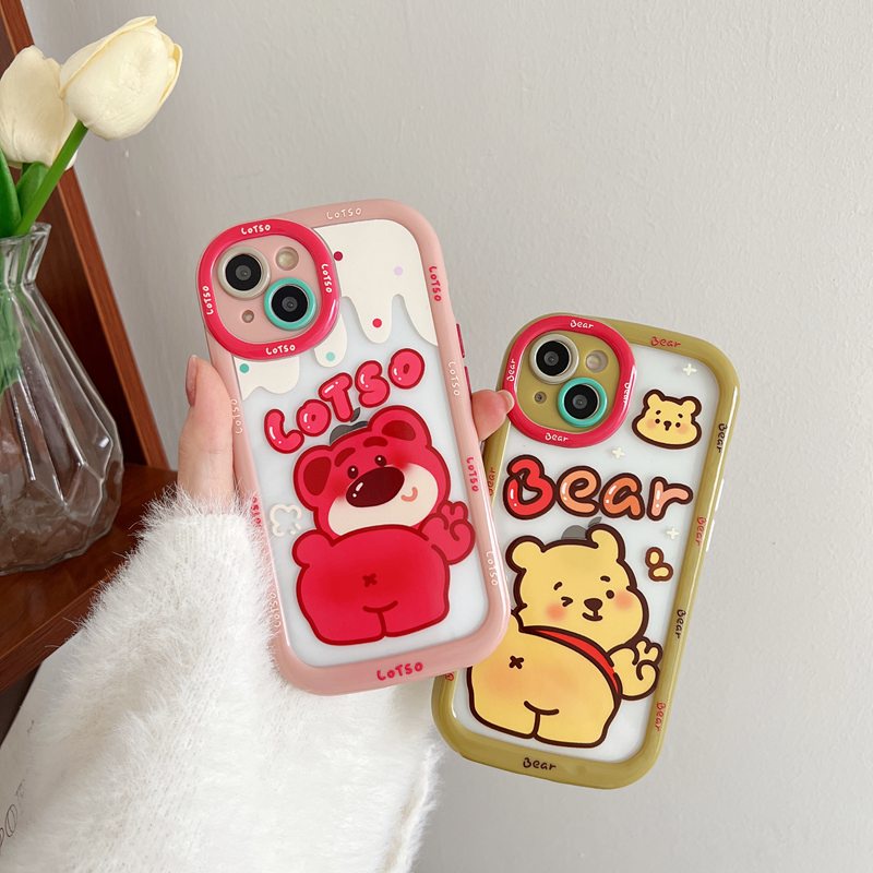 Detail Cute Bears Puff Casing HP iPhone 11 12 13 14 Pro Max14 Plus Hadiah Teman Pink Lucu Wanita Soft Casing Cover Winnie Strawberry Bear