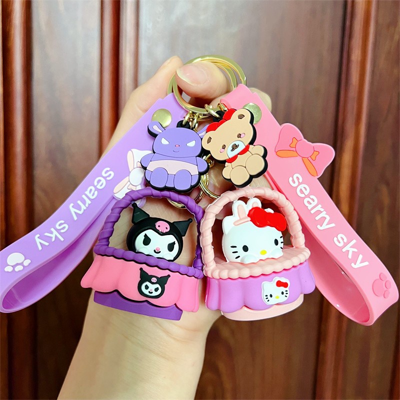 Detail Cute Cartoon MY Melody Hello Kitty Kuromi Mikyo Keychain Pendant with Lanyard Xmas Gifts