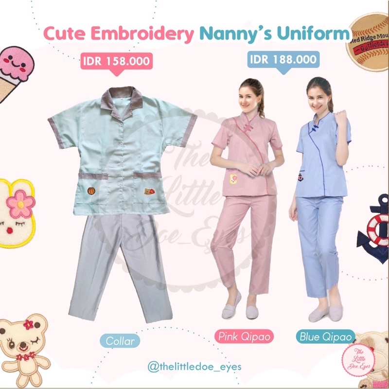 Detail Cute Embroidery Nanny's Uniform Baju Seragam Nanny Suster Baby Sitter Bordir