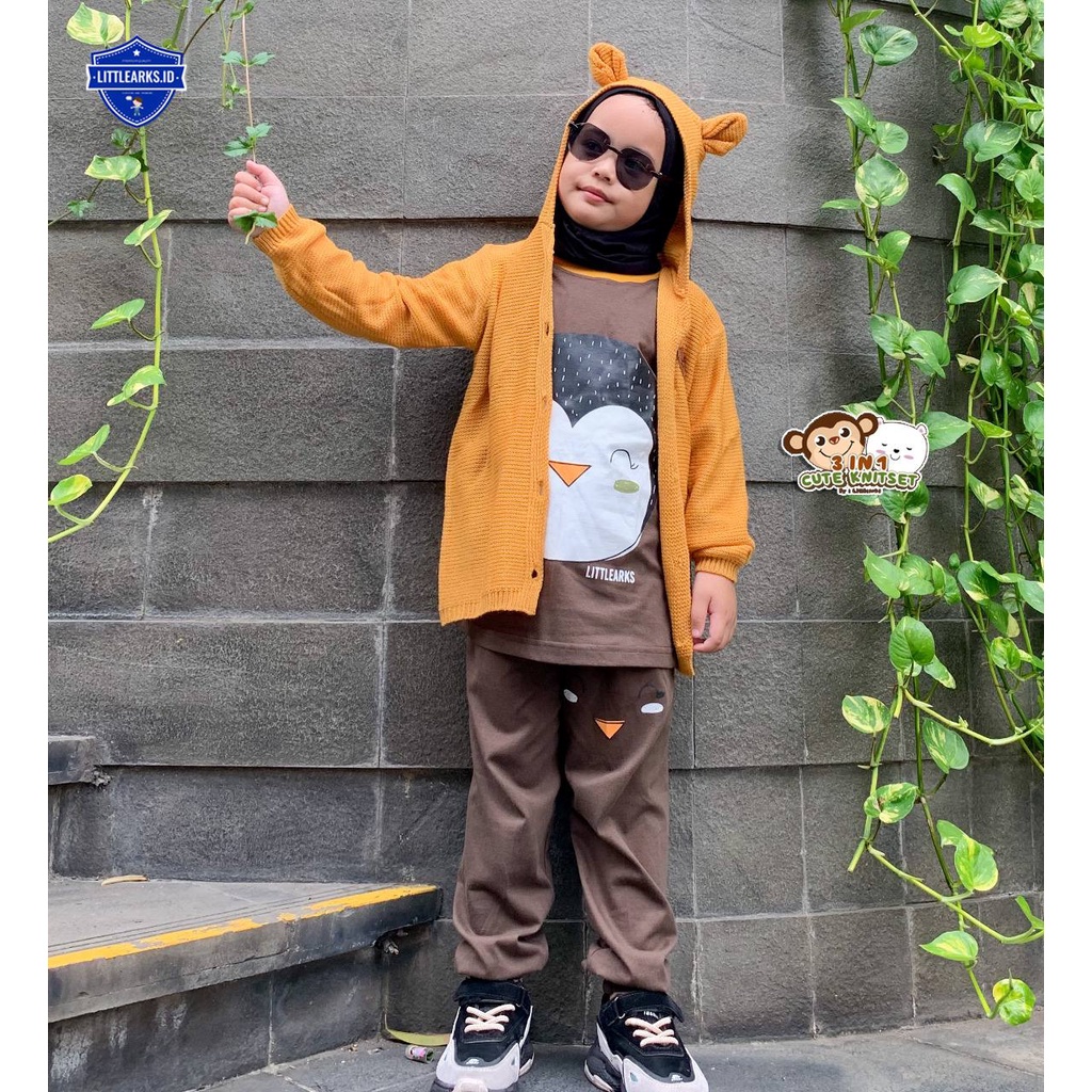 "3in1 Cute Knitset" Unisex bisa untuk anak laki-laki atau anak perempuan. "Pake 3in1 Cute Knitset dapat lucunya, dapat fungsinya" Karena: *Menggunakan Bahan Combet 24s terbaik OEKOTEX Original Certified *dengan Free Knit hangat rajut Acrylic, nyaman dan lembut. * Model Rajut dengan Hoodie dan telinga 3D * terdapat kancing hidup * Label kulit Littlearks bagian dada raju * Sablon rubber Foam, Kids Friendly * Paket komplit 1 set sudah dengan knit yang matching dengan bajunya. * Cocok untuk berkendara agar tubuh si kecil tetap hangat.