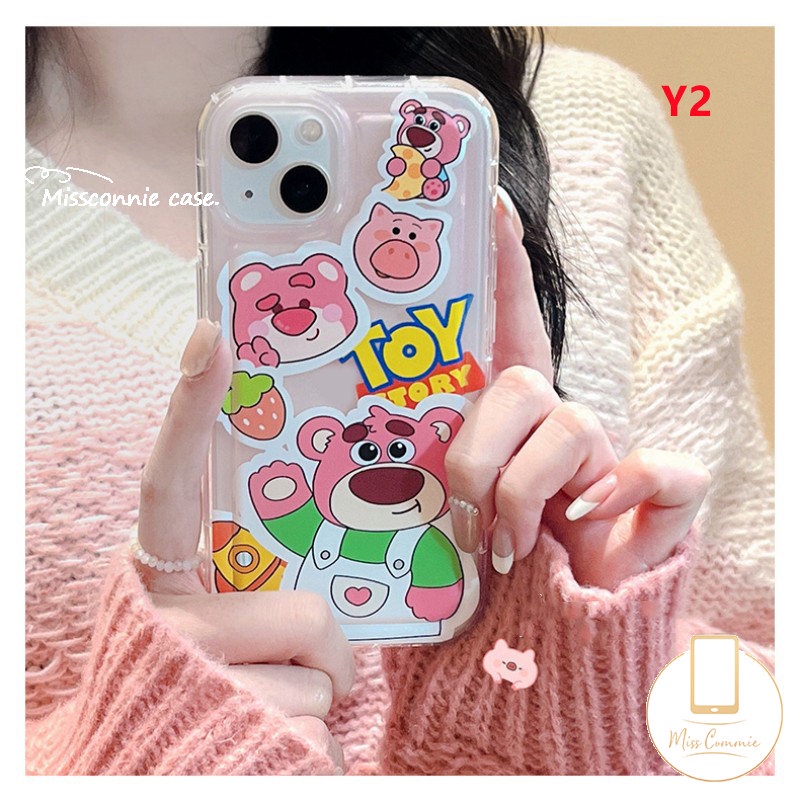 Lucu Strawberry Bear Lotso Case Kompatibel untuk iPhone 7Plus XR 11 13 12 14 Pro Max XS Max 6 7 6s 8 Plus SE 2020 Kartun Mainan Cerita Buzz Lightyear Shockproof Airbag Soft Tpu Cover