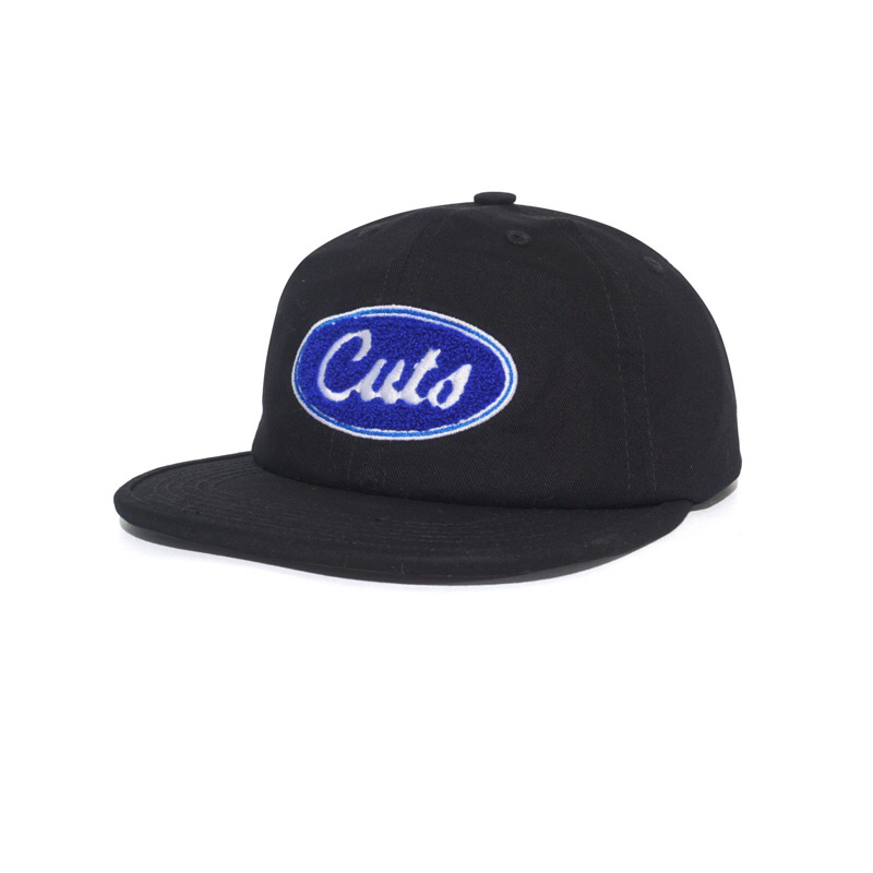 Black cotton 6 panels caps with white direct Chenille Embroidery at front