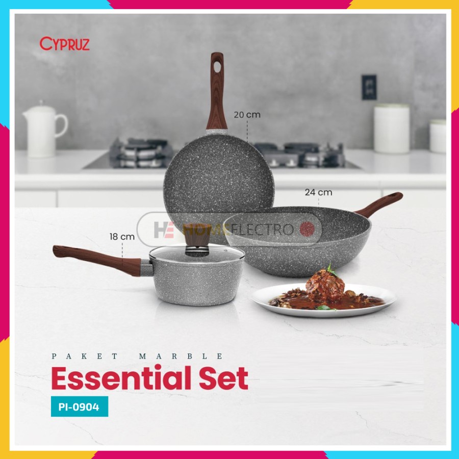 Cypruz PI-0904 Cookware Essential Set 5 Pcs Saucepan Lid Frpan PanciCypruz PI-0904 Cookware Essential Set 5 Pcs Saucepan Lid Frpan Panci