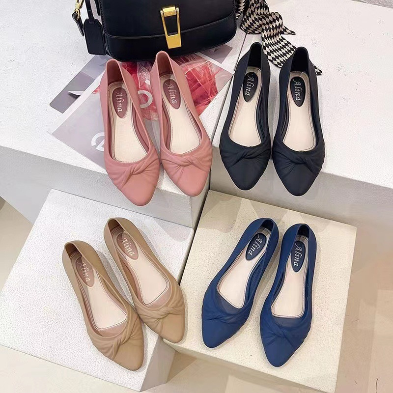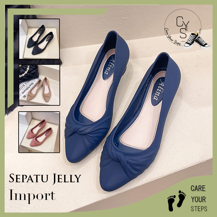 Detail CYS Sandal Hak Wanita Jelly Motif Pita Simpul Kekinian Sepatu Cewek Kantoran Flatshoes Casual Korea Fashion Style Slip On SPT-62