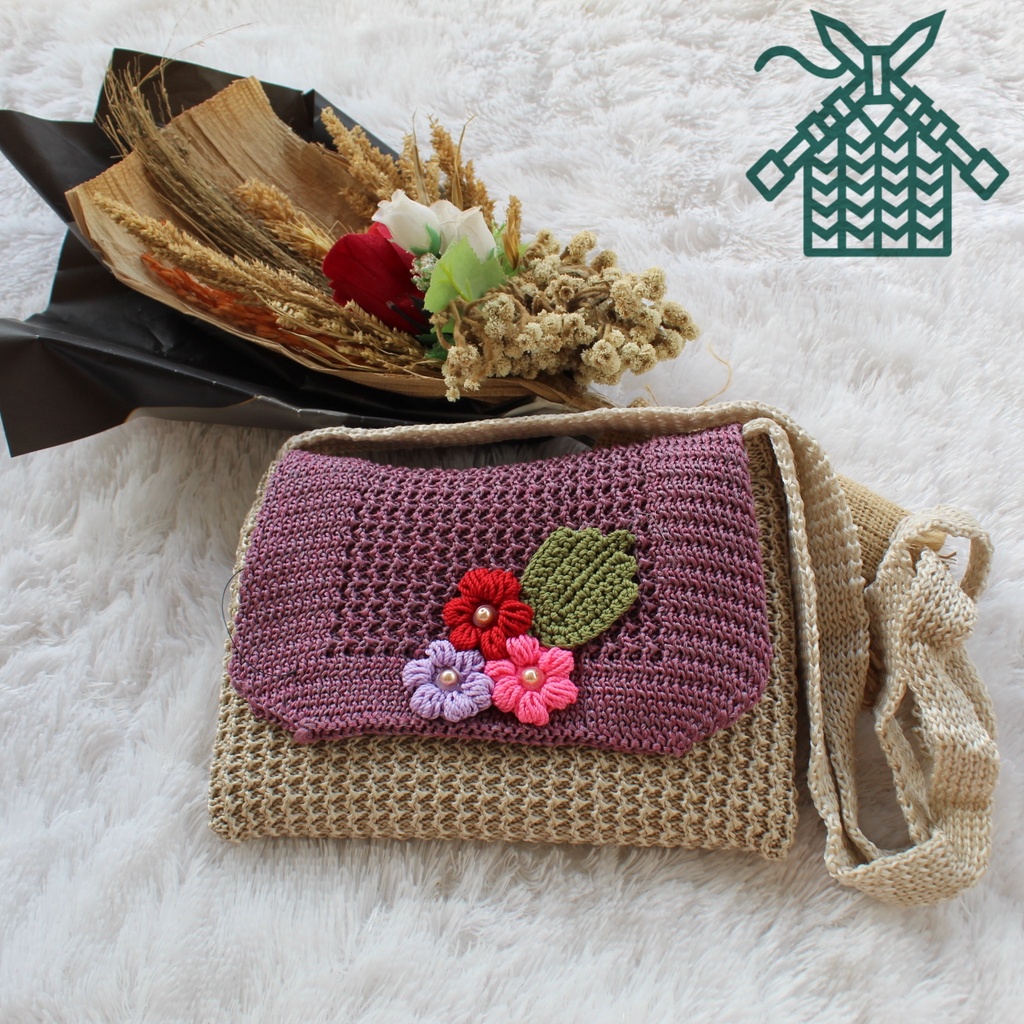 Detail [d_crafts] Tas selempang rajut bunga / rajutan bandung murah / tas slingbag rajut