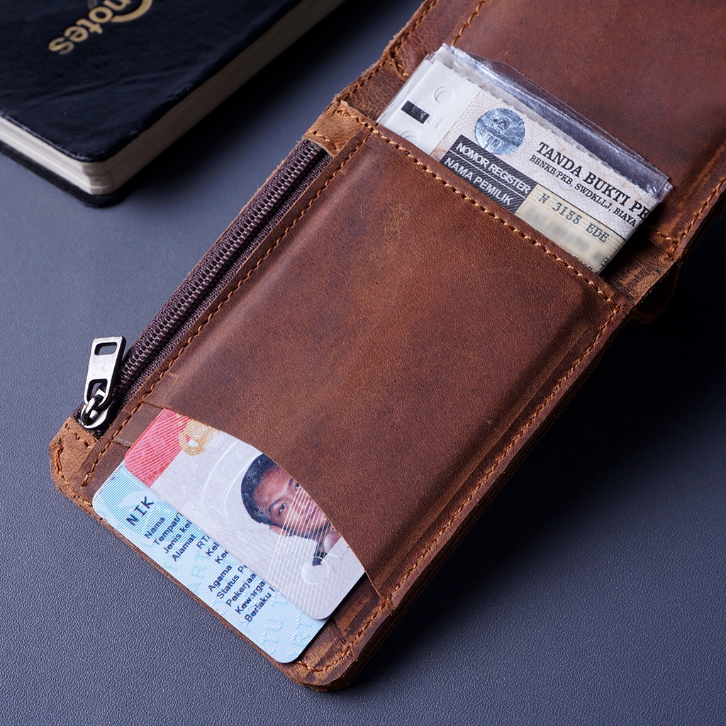 Produk yang satu ini hadir dengan bentuk yang kecil dan simpel serta mengusung desain natural minimalis dan mampu menampung hingga 10 kartu dengan posisinya yang aman dan nyaman (anti sempit, anti patah). Beberapa keunggulan dari dompet kulit asli yang satu ini adalah: