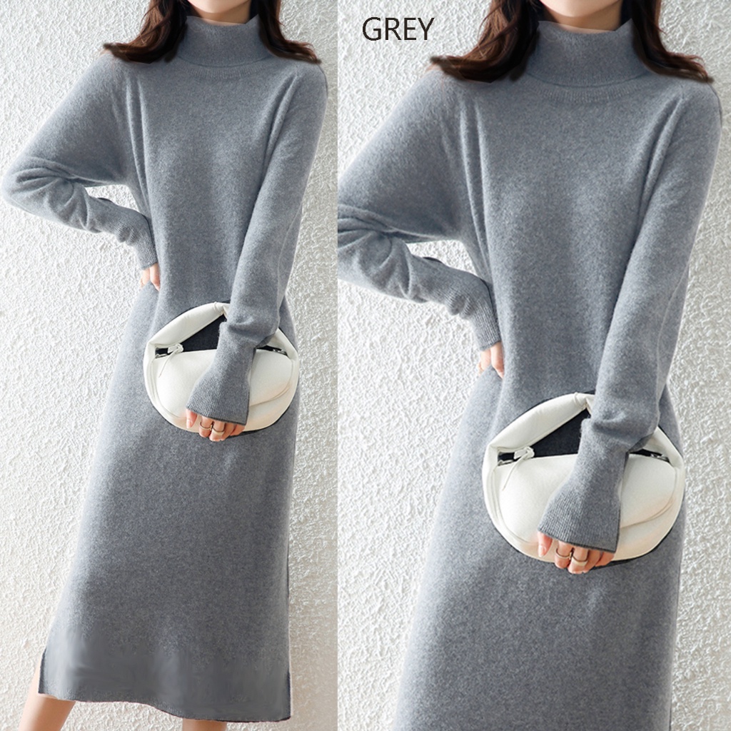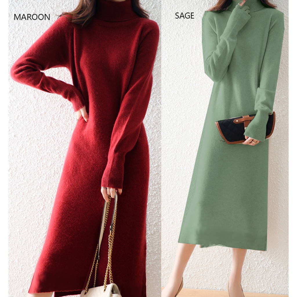 Your browser does not support the video tag.Video perkenalan produk (D108) Dress leher tinggi midi sweater knit dress. Sumber: Shopee.