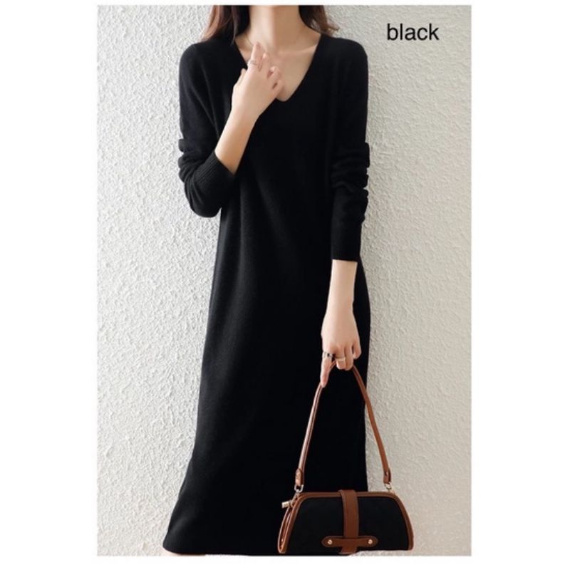 Pakaian Wanita > Dress > Midi Dress > (D109) v neck knit midi dress wanita rajut / dress formal casual knit