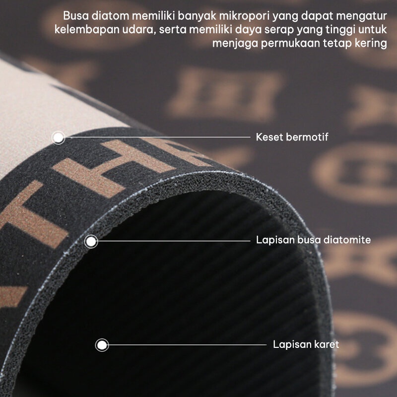 ▪️ Kelebihan Diatomite Mat : - Super Absorbent / Sangat Cepat Menyerap Air - Karet lembut, anti slip (tidak licin) & Memiliki daya serap yang tinggi. - Memiliki motif sangat lucu, sehingga ruangan Anda terlihat jauh lebih cantik - Bahan lembut dan nyaman saat di pijak, tidak melukai kaki. - Antibacterial Deodorant - Odor Elimination / Penghilang Bau