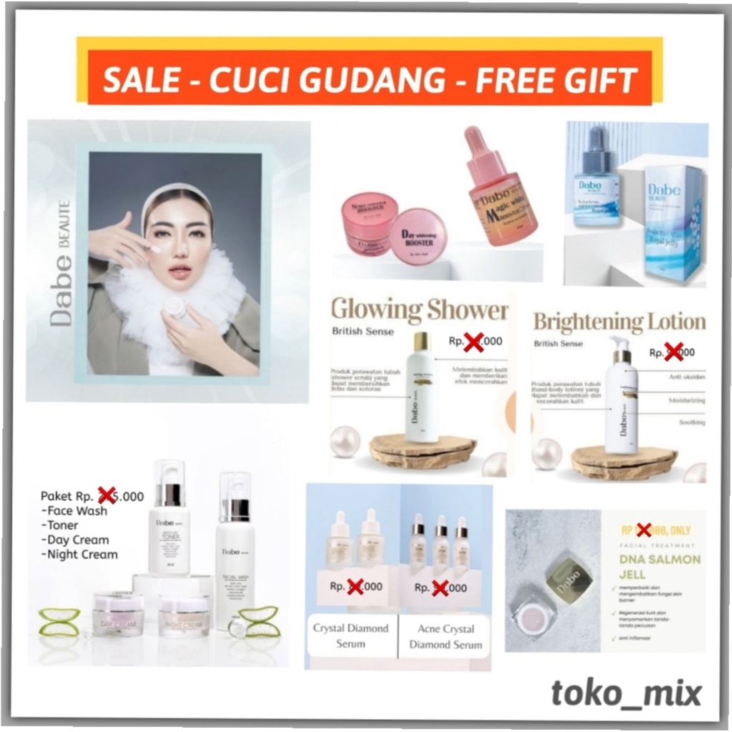 DABE BEAUTE by Bella Shofie Rigan - Paket Dabe Beaute : Face Wash, Toner, Cream Pagi, Cream Malam (FREE mini GOLD + POUCH Dabe Beaute) - Crystal Diamond Serum - Acne Crystal Diamond Serum - Salmon DNA Jell - Paket Body Care (Shower + Lotion) - Glowing Shower - Brightening Lotion FREE Gift setiap pembelian Dabe Beaute